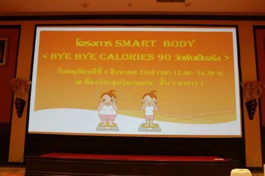 เมื่อวันพฤหัสบดีที่ 4 สิงหาคม 2559 เวลา 13.00-16.30 น. คณะทำงานโครงการสร้างเสริมคุณภาพชีวิตการทำงานและเสริมสร้างศักยภาพองค์กรภาครัฐ ในระยะเปลี่ยนผ่านสู่การเป็นองค์กรสุขภาวะ สถาบันวิจัยสังคม จุฬาลงกรณ์มหาวิทยาลัย นำโดย ดร.ศิริเชษฐ์ สังขะมาน ผู้จัดการโครงการฯ ได้เข้าร่วมงาน Smart Body (Bye Bye Calories 90 วันฝันเป็นจริง) ธนาคารอาคารสงเคราะห์ (ธอส.) ณ ห้องประชุมวิมานเมฆ ชั้น 3 อาคาร 2 สำนักงานใหญ่ธนาคารอาคารสงเคราะห์ ถนนพระราม 9 เขตห้วยขวาง