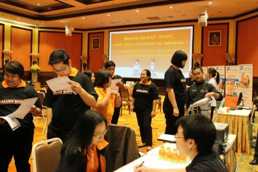 ภายในงาน ประกอบด้วยเวทีให้ความรู้ และบูธนิทรรศการที่เกี่ยวข้องกับเรื่องสุขภาพ ยกตัวอย่างเช่น บูธนิทรรศการจากโรงพยาบาลปิยะเวท ที่มีกิจกรรมให้สาธิตทดสอบร่างกาย ในส่วนของเวทีให้ความรู้ เริ่มต้นด้วยการบรรยายในหัวข้อ “แนวคิดคุณภาพชีวิตการทางานเพื่อองค์กรแห่งความสุข” โดย อ.ดร.ศิริเชษฐ์ สังขะมาน จากนั้นเป็นการให้ความรู้เกี่ยวกับด้านสุขภาพ ได้แก่ การรบรรยายในหัวข้อ “การออกกาลังกายเพื่อสุขภาพที่ถูกต้อง” โดย ผศ.ดร.สุชาติ ทวีพรปฐม ผู้ทรงคุณวุฒิ สานักงานกองทุนสนับสนุนการสร้างเสริมสุขภาพ (สสส.) และการบรรยายให้ความรู้ทางโภชนาการเพื่อสุขภาพ โดย โรงพยาบาลปิยะเวท และปิดท้ายงานด้วยการบันทึกผลการชั่งน้าหนักของผู้เข้าร่วมการแข่งขันที่เข้าร่วมโครงการ Smart Body (Bye Bye Calories 90 วันฝันเป็นจริง) โดยเป็นการบันทึกครั้งที่ 1