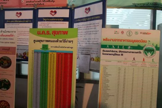 ในงานมีการจัดนิทรรศการให้ความรู้ 3 นิทรรศการ คือ นิทรรศการให้ความรู้เกี่ยวกับ Happy Work Place องค์กรแห่งความสุข Happy 8 สำนักงานเลขาธิการวุฒิสภา นิทรรศการจากเครือข่ายคนไทยไร้พุง โดยมีการทดสอบสมรรถภาพทางกาย (Physical Fitness Test) นำเสนอตัวอย่างแคลอรี่ในอาหาร และมีการเปิดรับสมัครผู้เข้าร่วมกิจกรรม “เครือข่ายรวมพลังกินดีไม่มีพุง” โดยมีผู้สมัครเข้าร่วมกิจกรรม 50 ราย นิทรรศจากเครือข่ายงดเหล้า นำเสนอซุ้มการงดเหล้าเข้าพรรษาพวกเราทำได้ และมีการเปิดรับสมัครผู้เข้าร่วมกิจกรรม “เครือข่ายคนสภา อาสางดเหล้า” โดยมีผู้สมัครเข้าร่วมกิจกรรม 20 ราย