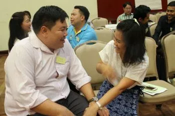 ส่วนในช่วงบ่ายเป็นกิจกรรมฝึกปฏิบัติ “การแปลงแผนสู่การปฏิบัติด้านการสร้างสุของค์กร” โดยให้ผู้เข้าร่วมอบรมที่แบ่งเป็น 8 กลุ่ม นำเครื่องมือ Happy 8 มาเป็นกรอบแนวคิด ซึ่งแต่ละกลุ่มประกอบด้วย