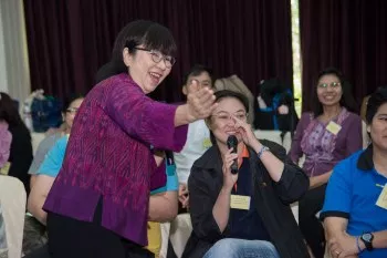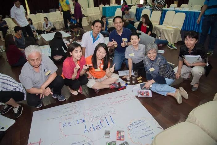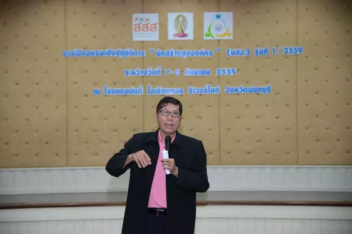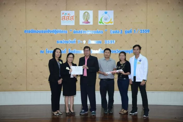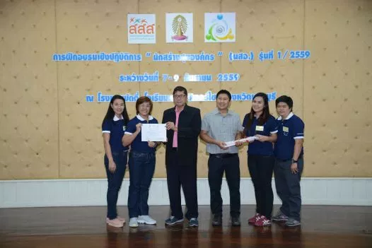 วันที่ 7-9 กันยายน 2559 โครงการสร้างเสริมคุณภาพชีวิตการทำงานและเสริมสร้างศักยภาพองค์กรภาครัฐ ในระยะเปลี่ยนผ่านสู่การเป็นองค์กรสุขภาวะ สถาบันวิจัยสังคม จุฬาลงกรณ์มหาวิทยาลัย ได้จัดอบรมเชิงปฏิบัติการ “นักสร้างสุของค์กร (นสอ.)” รุ่นที่ 1 ปี 2559 มีระยะเวลาดำเนินงาน 3 วัน 2 คืน จัดขึ้น ณ โรงแรมบัดดี้ โอเรียนทอล ริเวอร์ไซด์ อำเภอปากเกร็ด จังหวัดนนทบุรี