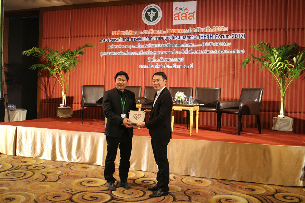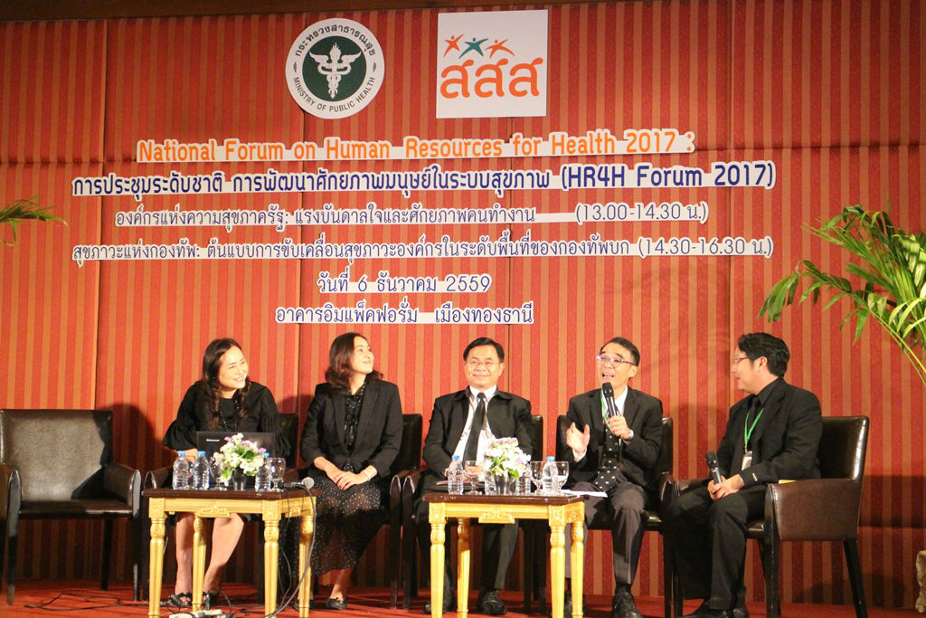 วันที่ 6-8 ธันวาคม 2559 กระทรวงสาธารณสุข ร่วมกับสำนักงานกองทุนสนับสนุนการสร้างเสริมสุขภาพ (สสส.) ได้จัดงานประชุมระดับนานาชาติ “การพัฒนาศักยภาพมนุษย์ในระบบสุขภาพ ประจำปี พ.ศ. 2560 : National Forum on Human Resources for Health 2017 (HR4H Forum 2017)” ภายใต้ Them: People Excellence: คุณค่าคน คุณค่างาน สานความสุข ณ อิมแพ็คฟอรั่ม เมืองทองธานี