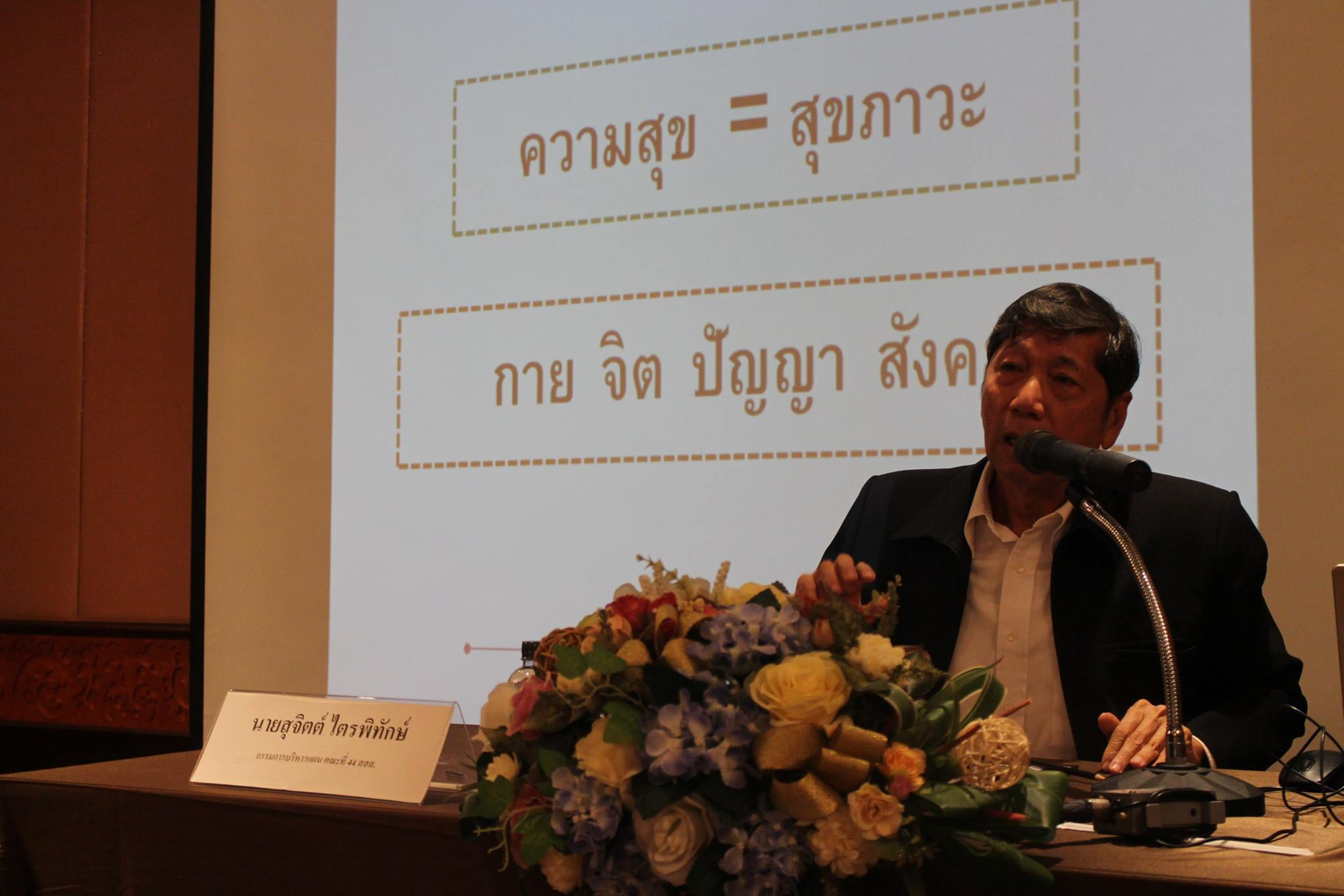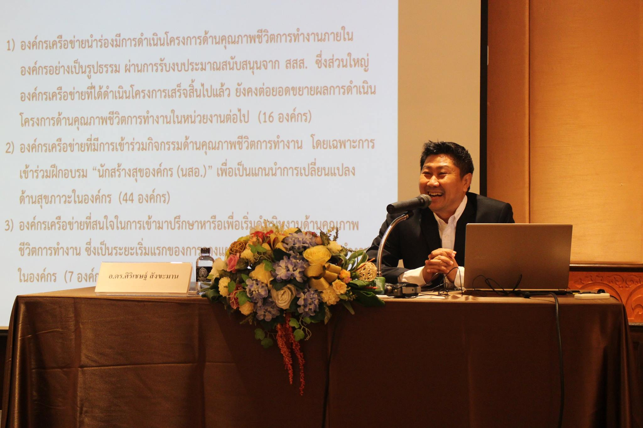 เมื่อวันที่ 30-31 มีนาคม 2560 โครงการสร้างเสริมคุณภาพชีวิตการทำงานและเสริมสร้างศักยภาพองค์กรภาครัฐในระยะเปลี่ยนผ่านสู่การเป็นองค์กรสุขภาวะ สถาบันวิจัยสังคม จุฬาลงอรณ์มหาวิทยาลัย ได้จัดอบรมหลักสูตรเฉพาะสำหรับองค์กรปฏิบัติภาครัฐ ในหลักสูตร “นักบริหารความสุของค์กร (นบส.)” รุ่นที่ 1 ณ โรงแรมไมด้า ทวารวดี แกรนด์ จ.นครปฐม โดยมีวัตถุประสงค์ เพื่อให้เกิดนักบริหารความสุของค์กร (นบส.) ที่มีศักยภาพในการขับเคลื่อนองค์กร สามารถบริหารโครงการ/กิจกรรมเกี่ยวกับการสร้างองค์กรสุขภาวะให้เกิดบรรยากาศแห่งความสุขในองค์กร นำองค์ความรู้ในการพัฒนาคุณภาพชีวิตเชื่อมกับแผนปฏิบัติการของหน่วยงาน และสามารถนำประเด็นองค์กรสุขภาวะเข้าสู่ระบบการทำงานปกติในองค์กรภาครัฐต่อไป