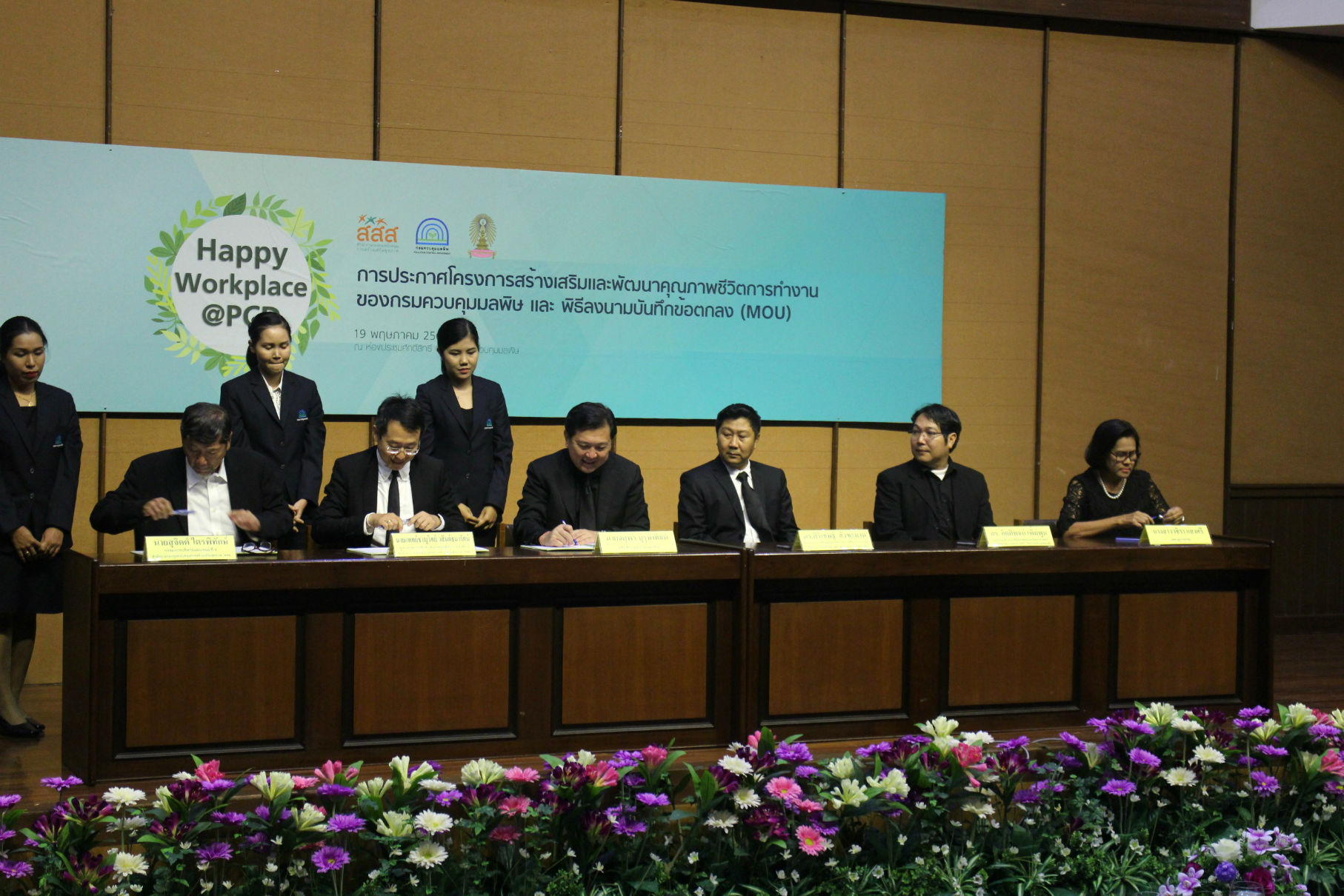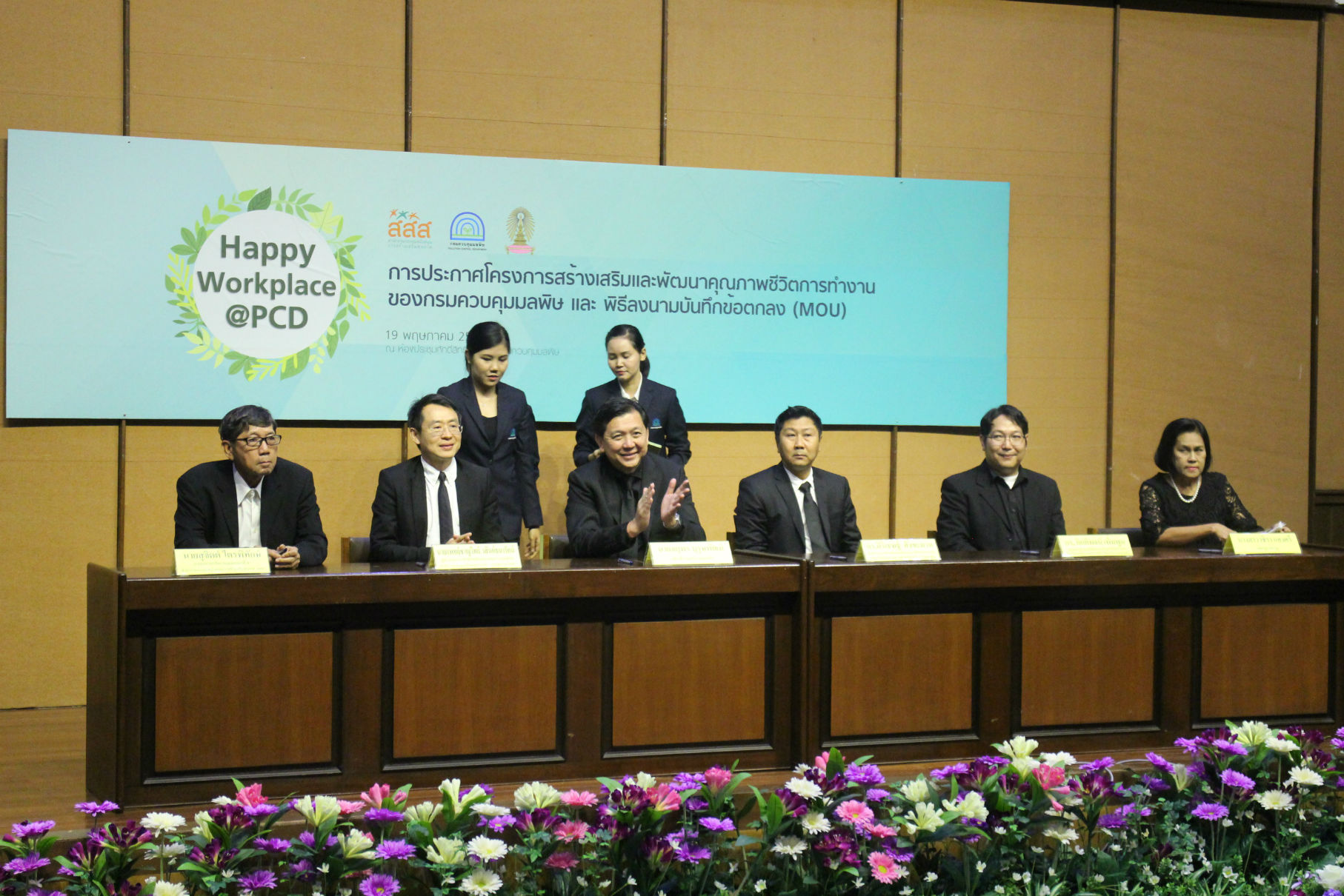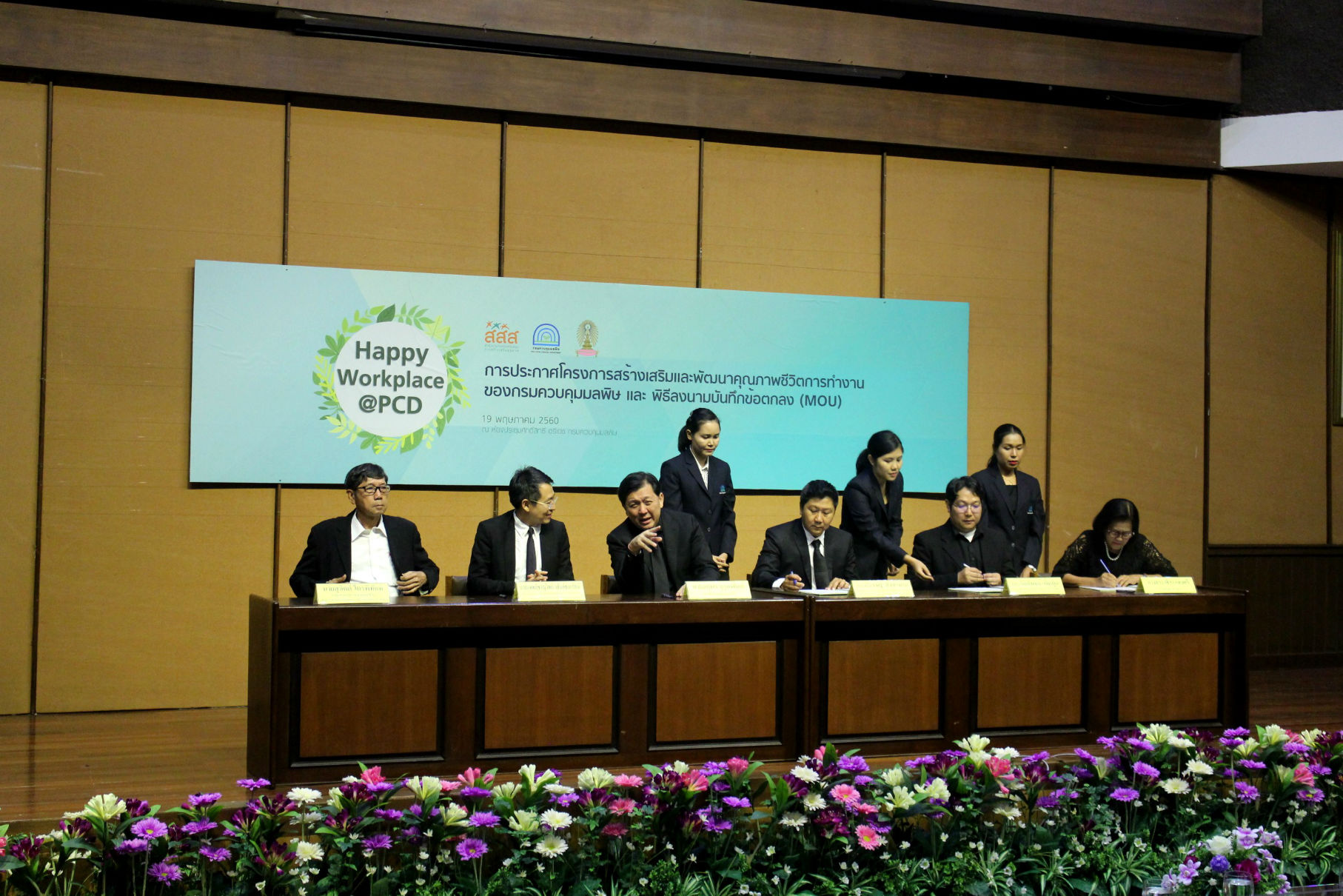 เมื่อวันที่ 19 พฤษภาคม 2560 เวลา 13.00 น. กรมควบคุมมลพิษได้จัดงาน “กรมควบคุมมลพิษเดินหน้าสู่องค์กรสร้างสุข Thailand 4.0” ณ ห้องประชุมศักดิ์สิทธิ์ ตรีเดช ชั้น 2 กรมควบคุมมลพิษ โดยมีพิธีลงนามบันทึกความร่วมมือ (MOU) ระหว่างกรมควบคุมมลพิษ สำนักงานกองทุนสนับสนุนการสร้างเสริมสุขภาพ (สสส.) และ สถาบันวิจัยสังคม จุฬาลงกรณ์มหาวิทยาลัย