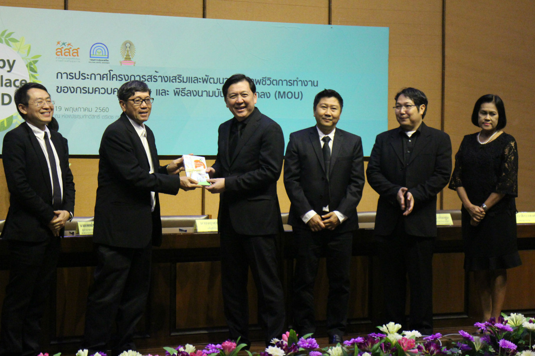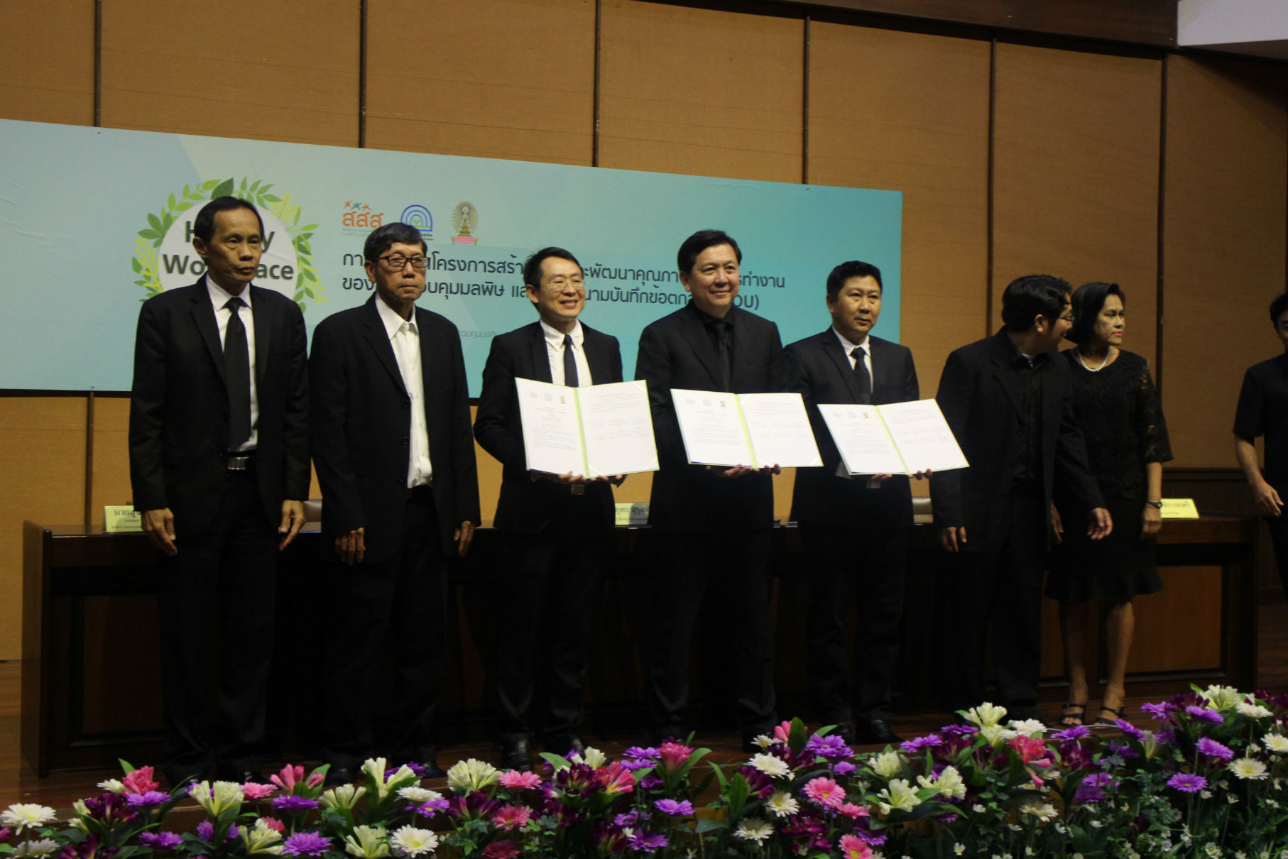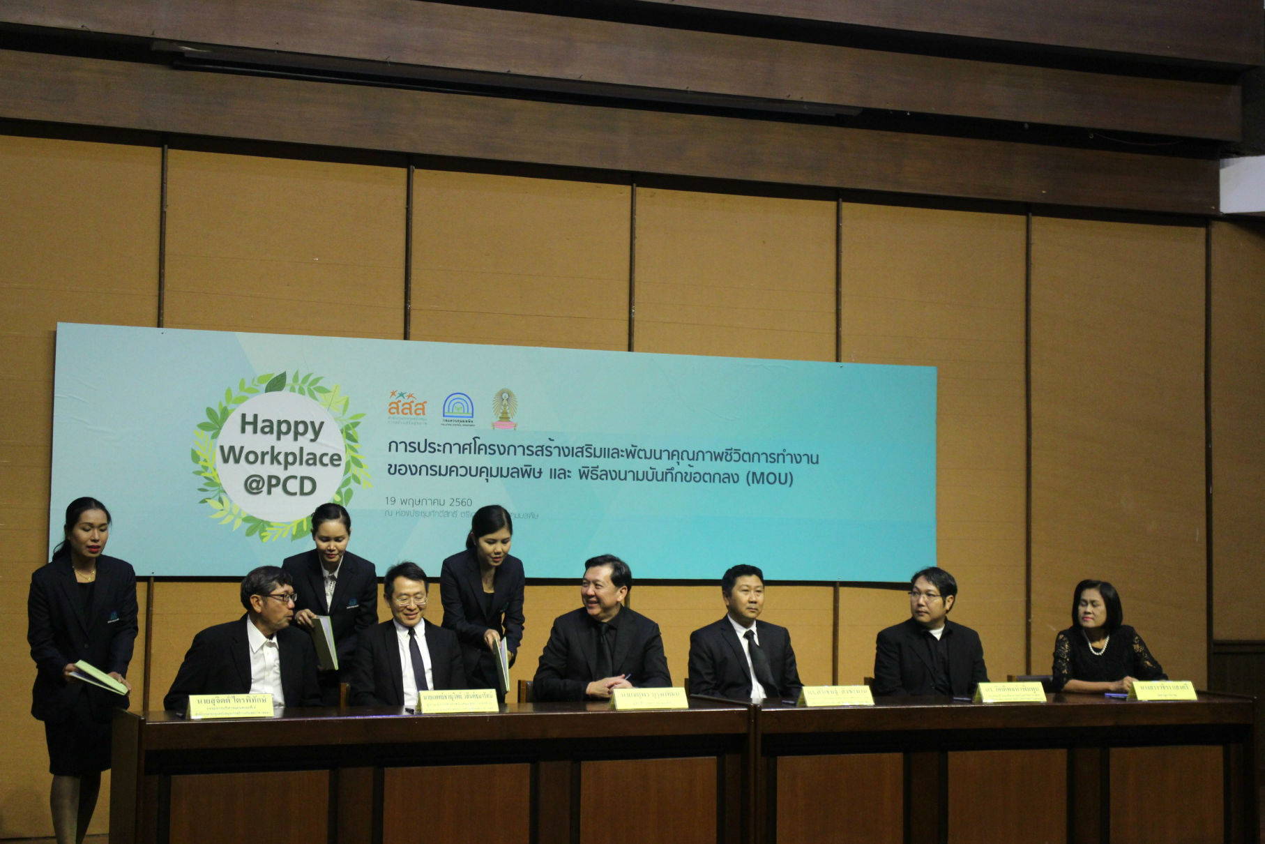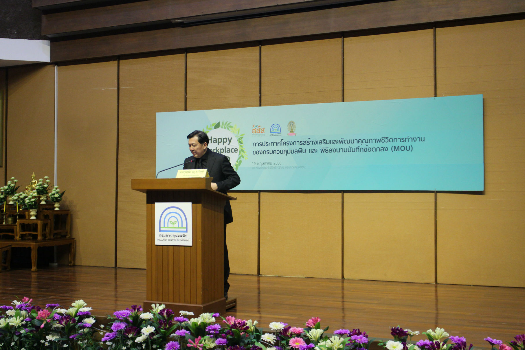 เมื่อวันที่ 19 พฤษภาคม 2560 เวลา 13.00 น. กรมควบคุมมลพิษได้จัดงาน “กรมควบคุมมลพิษเดินหน้าสู่องค์กรสร้างสุข Thailand 4.0” ณ ห้องประชุมศักดิ์สิทธิ์ ตรีเดช ชั้น 2 กรมควบคุมมลพิษ โดยมีพิธีลงนามบันทึกความร่วมมือ (MOU) ระหว่างกรมควบคุมมลพิษ สำนักงานกองทุนสนับสนุนการสร้างเสริมสุขภาพ (สสส.) และ สถาบันวิจัยสังคม จุฬาลงกรณ์มหาวิทยาลัย