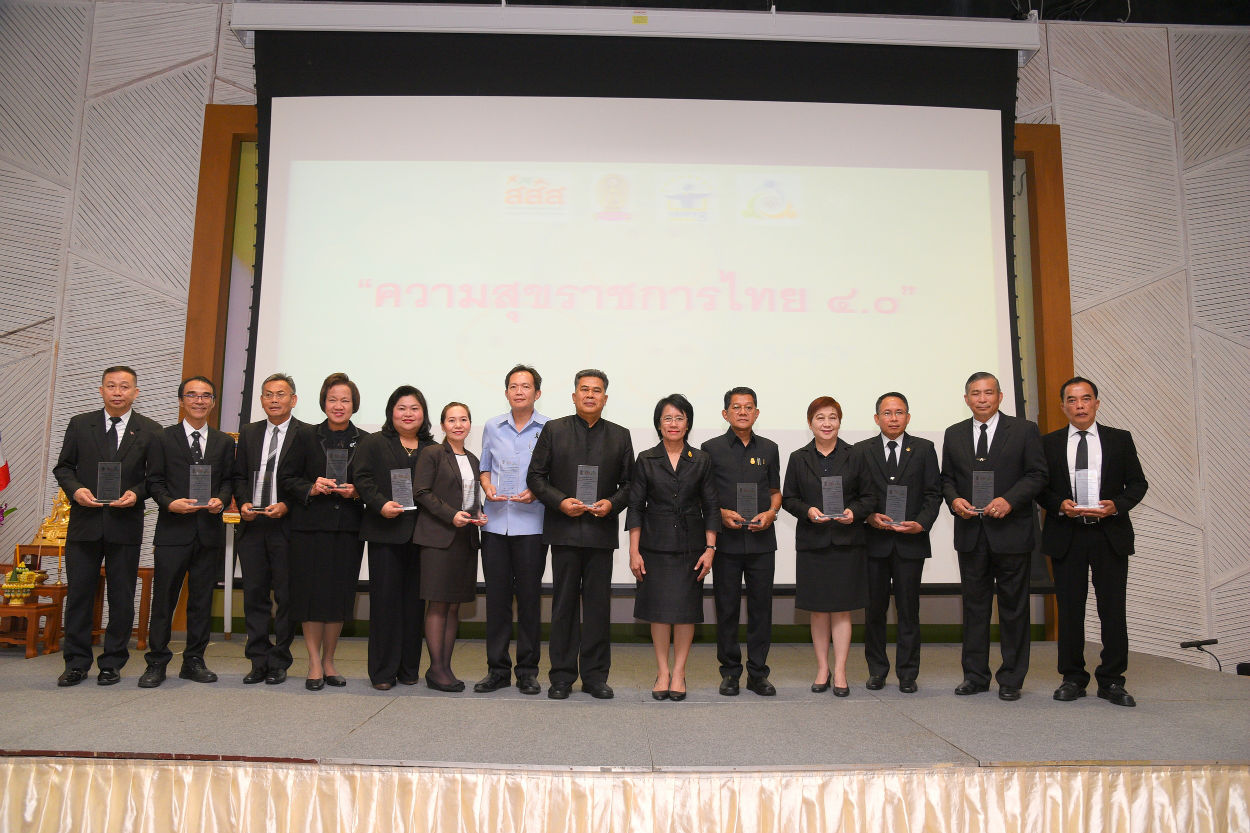 ต่อด้วยการกล่าวเปิดงาน “ความสุขราชการไทย 4.0” โดยได้รับเกียรติจาก นางเมธินี เทพมณี เลขาธิการ ก.พ. ขึ้นกล่าวเปิดงาน และมอบโล่ห์เกียรติคุณแด่ผู้บริหารส่วนราชการฯ ในฐานะที่เป็นหน่วยงานที่ดำเนินการด้านสุขภาวะองค์กรอย่างต่อเนื่อง ประกอบด้วยส่วนราชการต่างๆ ดังนี้