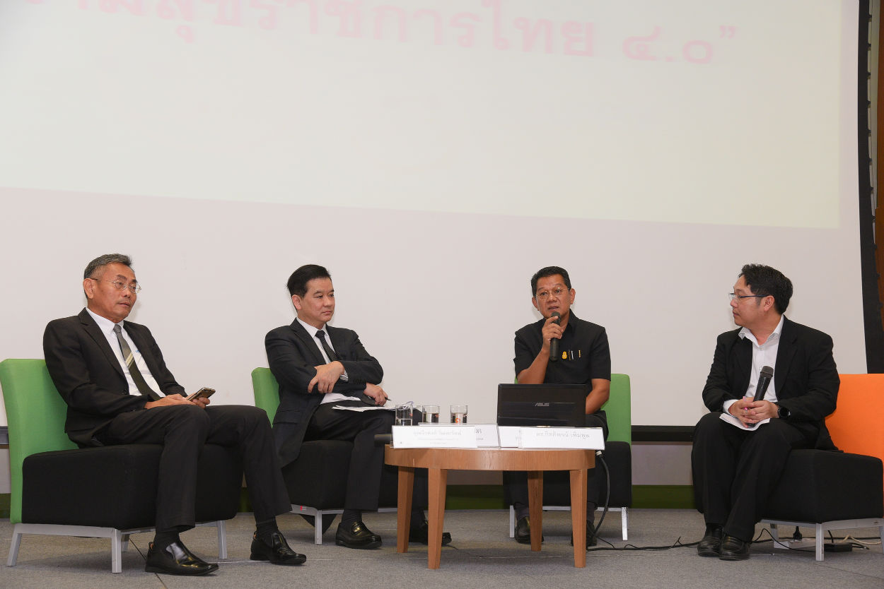 นอกจากนี้ ภายในงานฯ ยังมีเวทีเสวนาในหัวข้อ “ก้าวไปข้างหน้าความสุขราชการไทย 4.0” โดยมีผู้ร่วมเสวนา คือ นายจีรพงศ์ วัฒนะรัตน์ (ที่ปรึกษาด้านกฎหมาย สำนักงานเลขาธิการสภาผู้แทนราษฎร) นายมนัส กำเนิดมณี (ผู้อำนวยการสำนักบริหารทรัพยากรบุคคล กรมชลประทาน) ดร.ณัฐวุฒิ พงศ์สิริ (นายกสมาคมการจัดการงานบุคคลแห่งประเทศไทย) ดำเนินรายการโดย ดร.กิตติพจน์ เพิ่มพูล
