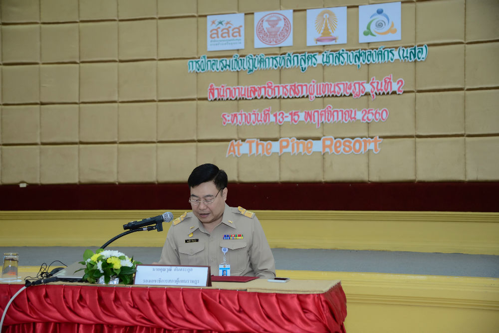 การฝึกอบรมเชิงปฏิบัติการ “นักสร้างสุของค์องค์กร” (นสอ.) สำนักงานเลขาธิการสภาผู้แทนราษฎร รุ่นที่ 2 ระหว่างวันที่ 13-15 พฤศจิกายน พ.ศ. 2560 ณ เดอะไพน์ รีสอร์ท ต.ท้ายเกาะ อ.สามโคก จ.ปทุมธานี โดยมี ว่าที่ร้อยตำรวจตรี อาพัทธ์ สุขะนันท์ ผู้อำนวยการสำนักบริการทางการแพทย์ประจำรัฐสภากลาสวรายงาน และนายคุณวุฒิ ตันตระกูล รองเลขาธิการสภาผู้แทนราษฎร กล่าวเปิดงาน