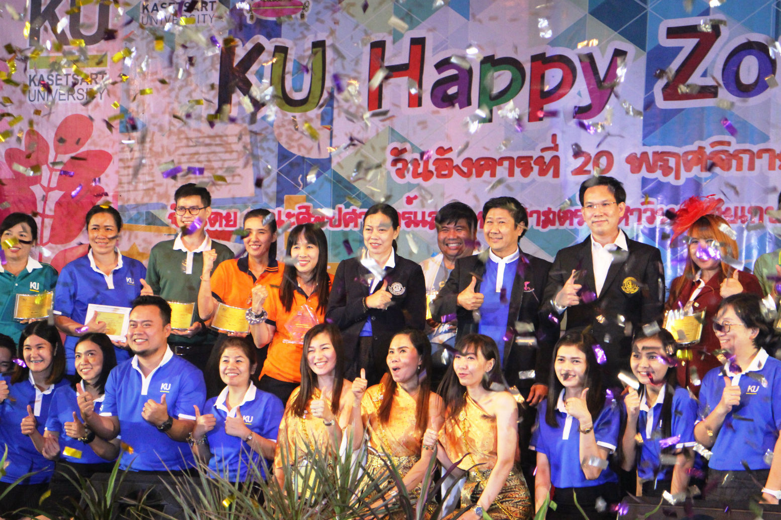 รองศาสตราจารย์ ดร.ตฤณ แสงสุวรรณ รองอธิการบดีวิทยาเขตกำแพงแสน ได้มอบหมายให้ ผู้ช่วยศาสตราจารย์ ดร.ธารินทร์ ก้านเหลือง ผู้ช่วยอธิการบดีฝ่ายกิจการนิสิต กีฬา และทำนุบำรุงศิลปวัฒนธรรม เป็นประธานในพิธีเปิดงาน และดร.ศุภชัย เหมือนโพธิ์ รักษาการแทนรองคณบดีฝ่ายวางแผนยุทธศาสตร์และพัฒนาองค์กร คณะศิลปศาสตร์และวิทยาศาสตร์ กล่าวรายงานวัตถุประสงค์ของการจัดงานเพื่อการพัฒนาบุคลากร และเสริมสร้างคุณภาพชีวิตการทำงานในมหาวิทยาลัยเป็นสำคัญ โดยยึดหลัก Happy 8 เป็นกรอบสำหรับการจัดงานครั้งนี้ โดยความร่วมมือกับสำนักงานกองทุนสนับสนุนการสร้างเสริมสุขภาพ (สสส.) เพื่อสร้างหน่วยงานต้นแบบสู่การเป็นองค์กรสุขภาวะ ตลอดจนพัฒนาแกนนำและเชื่อมโยงพลังเครือข่ายสร้างความสุขในที่ทำงานไปสู่สุขภาวะทั้ง 8 นั่นเอง