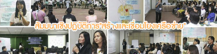 แผนงานสร้างเสริมคุณภาพชีวิตการทำงานองค์กรภาครัฐ ได้จัดโครงการสัมมนาเชิงปฏิบัติการ “สร้างและเชื่อมโยงเครือข่ายองค์กรสร้างสุข” เพื่อประสานเชื่อมร้อยองค์กรสร้างสุขเข้าเป็น “เครือข่ายองค์กรสร้างสุข” ร่วมกันกำหนดหน้าที่การทำงานของเครือข่ายองค์กรสร้างสุข และร่วมกันวางแผนงานเพื่อหนุนเสริมกิจกรรมสร้างสุขในองค์กรให้มีประสิทธิภาพ โดยจัดกิจกรรมในวันที่ 9-10 กรกฎาคม 2556 ณ KU Home มหาวิทยาลัยเกษตรศาสตร์