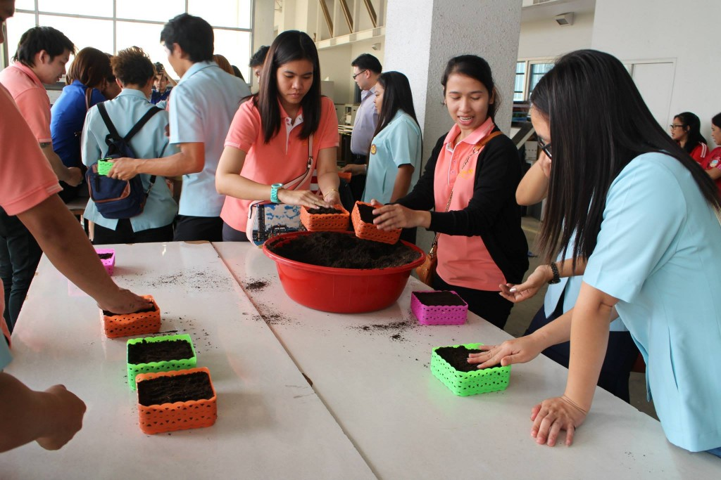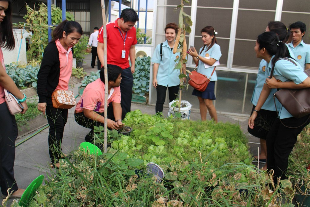 หลังจากนั้นทาง NECTEC ได้พานำชมแปลงผักบนชั้นดาดฟ้า พร้อมกิจกรรม Workshop เรียนรู้การปลูกต้นอ่อนทานตะวัน โดยเจ้าหน้าที่ฝ่ายอาคารสถานที่ซึ่งเป็นผู้เชี่ยวชาญทางด้านต้นไม้นั้น เป็นผู้พานำชมแปลงผักบนดาดฟ้า ซึ่งแปลงผักปกติจะปลูกพืชเพียง 3 ชนิด ได้แก่ ผักสลัด ถั่ว บล็อคเคอรี่ แต่เนื่องจากด้วยความที่หน่วยงานเป็นหน่วยงานวิจัยทางวิทยาศาสตร์ จึงมักมีบุคลากรนำพืชพันธ์ชนิดอื่นๆมาทดลองปลูกด้วย เช่น สตอเบอรรี่ บวบ หัวผัก เป็นต้น จากนั้นเป็นกิจกรรมสาธิตการปลูกต้นอ่อนทานตะวันในตระกร้าเล็ก โดยวัสดุประกอบด้วย ดิน ปุ๋ยมะพร้าว วัสดุกระจาดเหลี่ยม หลังจากปลูกแล้ว ให้รดน้ำทุกวัน เป็นเวลา 5 วัน สามารถนำมาประกอบอาหารและตากแห้งได้ โดยได้ให้ผู้เข้าร่วมทุกคนทดลองปลูกใส่กระจาดและนำติดมือกลับไปด้วย