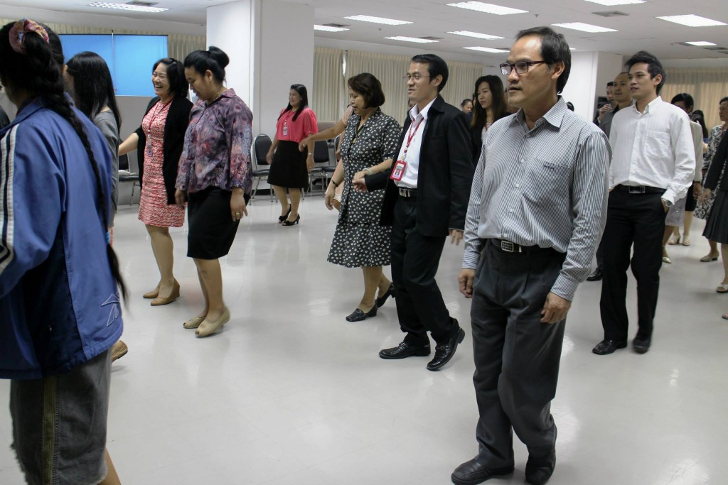 วันที่ 24 กุมภาพันธ์ 2558 เวลา 17.00 น. คณะทำงานโครงการศึกษาเพื่อพัฒนาและประเมินผล “องค์กรปฏิบัติภาครัฐ” เพื่อการเป็นองค์กรสุขภาวะ ได้เข้าตรวจเยี่ยมกิจกรรมสร้างสุของค์กร สำนักงานเลขาธิการวุฒิสภา โดยกิจกรรมประจำวันอังคาร คือกิจกรรมเรียนเต้นลีลาศ ซึ่งมีบุคลากรสำนักงานเลขาธิการวุฒิสภาให้ความสนใจและเข้าร่วมกว่า 80 คน โดยมีผู้บริหารเข้าร่วมกิจกรรมด้วย