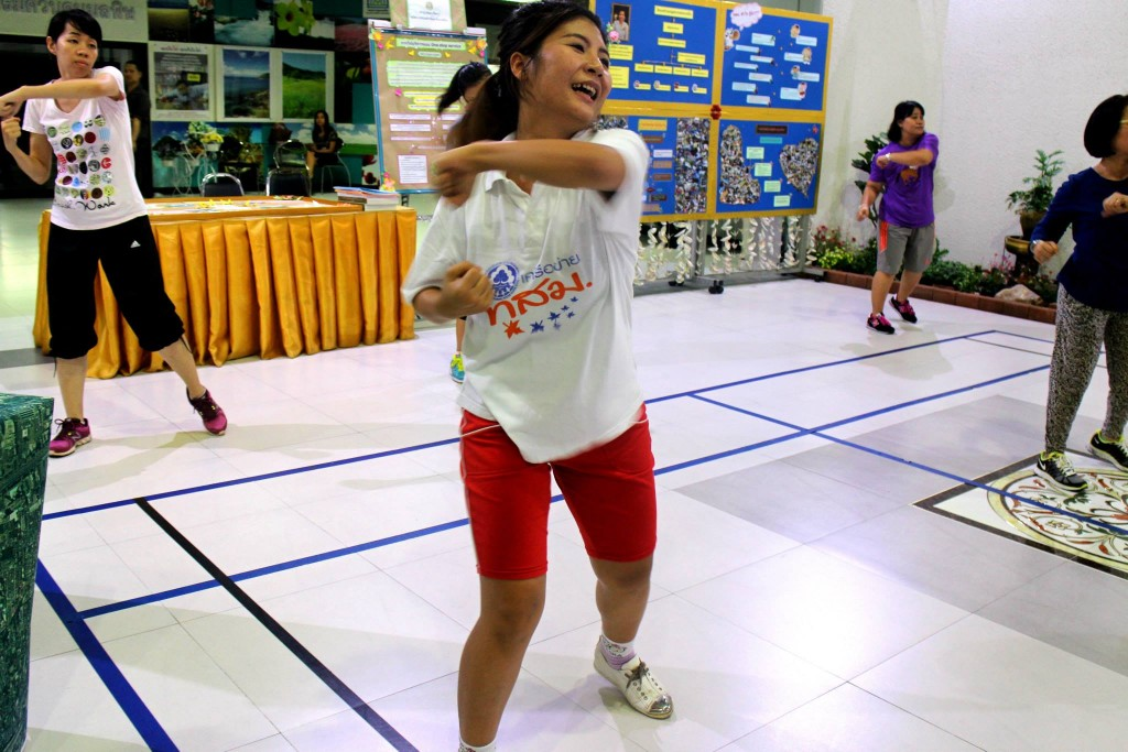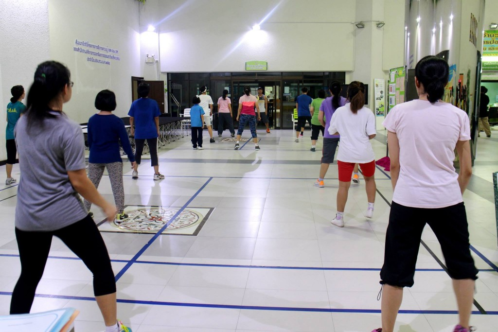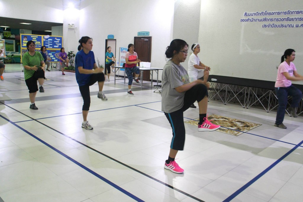 วันจันทร์ที่ 2 มีนาคม 2558 คณะทำงานโครงการศึกษาเพื่อพัฒนาและประเมินผล “องค์กรปฏิบัติภาครัฐ” เพื่อการเป็นองค์กรสุขภาวะ ตรวจเยี่ยมกิจกรรมสร้างความสุขทางด้านร่างกาย (แอโรบิค) สำนักงานปลัดกระทรวงทรัพยากรธรรมชาติและสิ่งแวดล้อม ณ บริเวณชั้น 1 อาคารกรมควบคุมมลพิษ