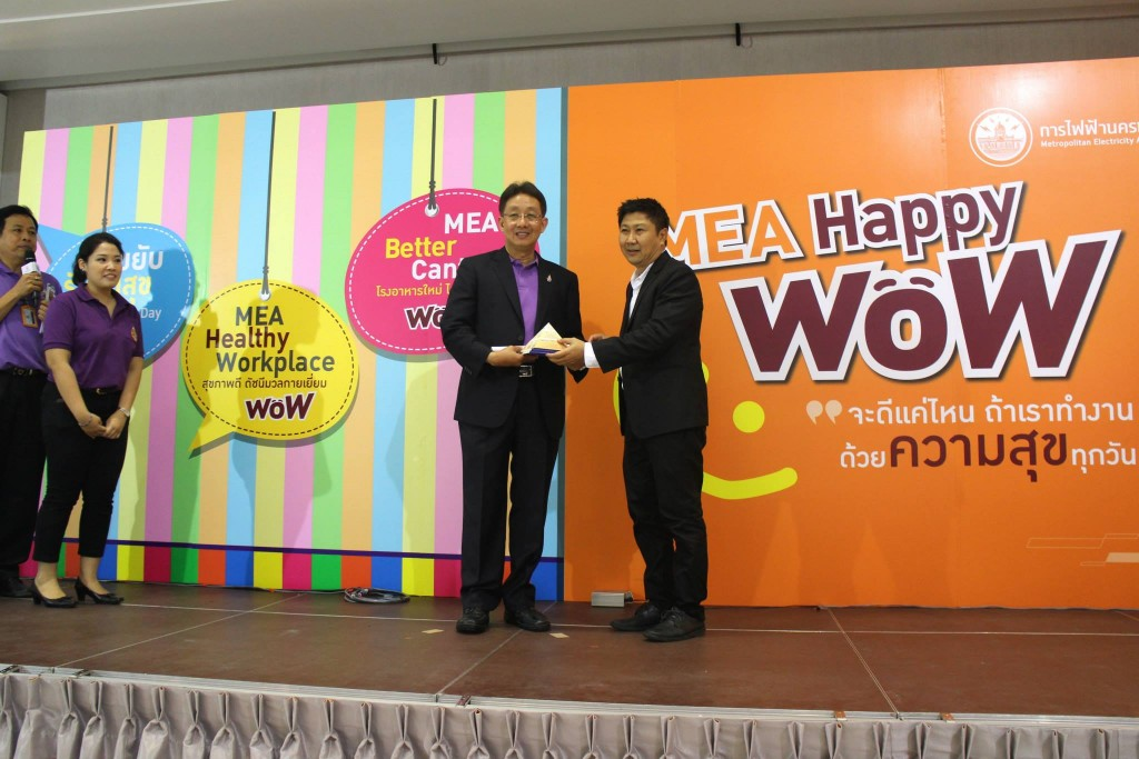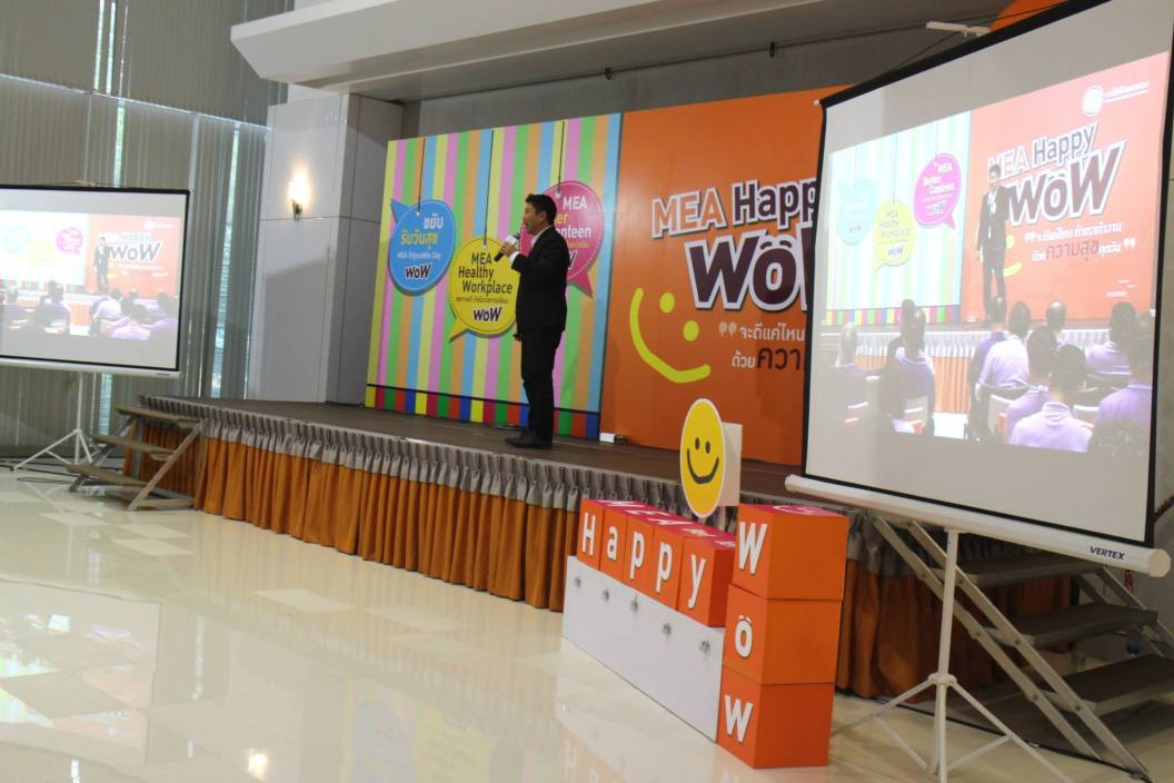 วันที่ 8 เมษายน 2558 การไฟฟ้านครหลวง สำนักงานใหญ่ ชิดลม ได้จัดงานเปิดตัวโครงการ “MEA Happy … WoW” ณ ห้องโถง ชั้น 1 อาคารสำนักงานใหญ่ การไฟฟ้านครหลวง เวลา 08.00-13.00 น. เปิดงานโดย ผู้ว่าการการไฟฟ้านครหลวง โดยมี อาจารย์ ดร.ศิริเชษฐ์ สังขะมาน ผู้จัดการแผนงานสร้างเสริมคุณภาพชีวิตการทำงานองค์กรภาครัฐ ในฐานะตัวแทนของสำนักงานกองทุนสนับสนุนการสร้างเสริมสุขภาพ (สสส.) และสถาบันวิจัยสังคม จุฬาลงกรณ์มหาวิทยาลัย เป็นผู้บรรยายในประเด็นเกี่ยวกับ Happy Workplace ในหัวข้อ “สุขสร้างได้” โดยมีผู้เข้าร่วมงานทั้งผู้บริหารและบุคลากรเข้าร่วมงานกว่า 200 คน