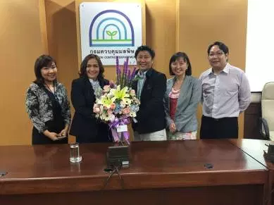 วันที่ 21 ตุลาคม 2558 คณะทำงานโครงการสร้างเสริมคุณภาพชีวิตการทำงานและเสริมสร้างศักยภาพองค์กรภาครัฐในระยะเปลี่ยนผ่านสู่การเป็นองค์กรสุขภาวะ สถาบันวิจัยสังคม จุฬาลงกรณ์มหาวิทยาลัย นำโดย ดร.ศิริเชษฐ์ สังขะมาน และ คุณยอดขวัญ รุจนกนกนาฏ ตัวแทนจากสำนักสนับสนุนสุขภาวะองค์กร สสส. เข้าร่วมแสดงความยินดีกับ ดร.วิจารย์ สิมาฉายา อธิบดีกรมควบคุมมลพิษ ซึ่งเป็นอดีตรองปลัดกระทรวงทรัพยากรธรรมชาติและสิ่งแวดล้อม หนึ่งในภาคีเครือข่ายองค์กรแห่งความสุขภาครัฐ โดยได้เข้าร่วมหารือกับคณะทำงานกรมควบคุมมลพิษ ในการเข้าร่วมเป็นภาคีเครือข่ายของโครงการฯ พร้อมทั้งมอบกระเช้าดอกไม้แสดงความยินดีกับอธิบดี (โดยมีตัวแทนรับมอบ เนื่องจากอธิบดีติดราชการด่วน)